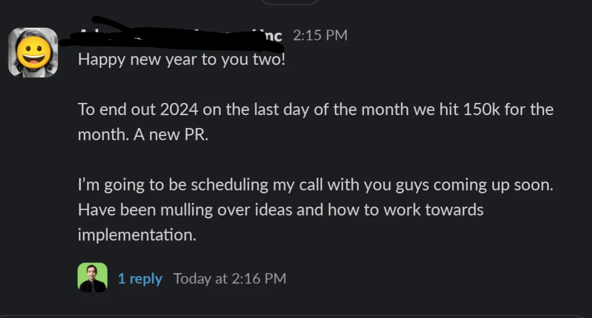 "Rounded out the numbers for January at $25k collected. 7x clients & 5 more in the pipeline for next week."